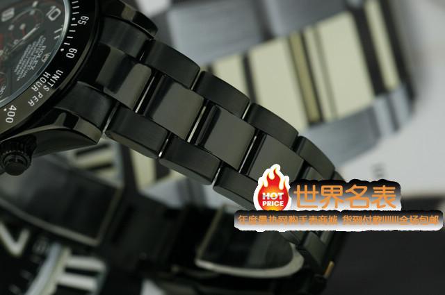 材質:高硬度耐磨玻璃鏡面,全鋼黑色錶殼錶帶,黑色計時速度字圈。