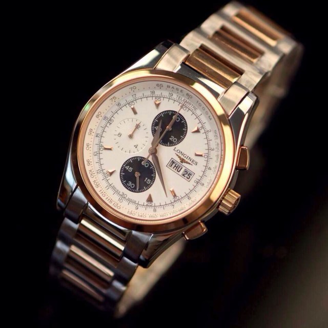 浪琴多功能白色錶盤,六針款,間金錶鏈,浪琴男士機械腕錶品牌:浪琴