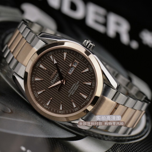 歐米茄海馬系列3針雙曆背透自動機械男錶(玫瑰金咖啡面)