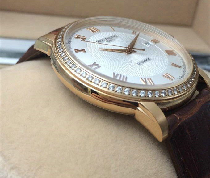壹比壹 百達翡麗18K玫瑰金鑲鉆 自動機械男士手錶 瑞士原裝機芯