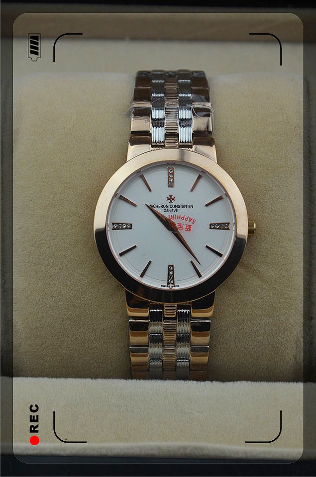 【品牌】:江詩丹頓 情侶款【機芯】:瑞士石英機芯 實心【材質】:高硬度耐磨藍寶石鏡面,全鋼錶殼,金色錶圈,同軸五銖精鋼錶帶,按扣,白色錶盤,金色錶針,金色條釘刻度【功能】:2針計時,防磁,防震【尺寸】:男:錶殼36mm,厚度6.6mm ,重量90g 女:錶殼25mm,厚度6.4mm,重量50g【標誌】:錶面、錶背、錶帶處有品牌標誌【防水】:生活防水【保修】:機芯壹年保修,機芯以外的其他手錶配件不在保修範圍,此為手錶行業保修慣例,如有其他延期保修服務,請聯系店主咨詢。【配件】:包裝盒,說明書,質保卡,吊牌,香港發票,手提袋
