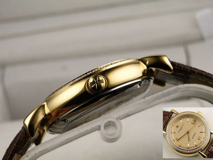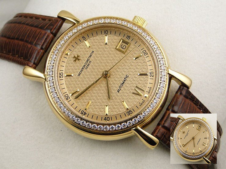 高檔瑞士機芯江詩丹頓Vacheron Constantin男錶 18K金金面鑲鉆自動機械