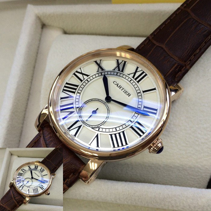 【品牌】:卡地亞【款式】:男士石英手錶【機芯】:瑞士原裝進口石英機芯【錶面】:法國玻璃藍寶石鏡面,永不磨損。莫氏9級藍寶石錶面【材料】:進口瑞士玫瑰金錶殼 法國小牛皮錶帶,永不掉色、永不生銹,高精度藍寶石玻璃永不劃損【尺寸】:直徑:42MM,厚度:11MM【標誌】:錶面、錶背、錶扣均有原廠標誌