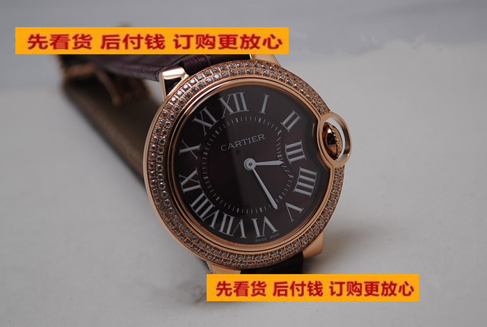 卡地亞手錶 藍氣球中號款 瑞士石英機芯 玫瑰金環殼鑲鉆皮帶女錶 雍雅富貴