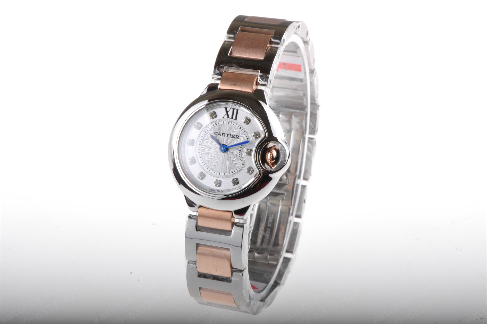 品牌:卡地亞系列藍氣球系列款式:女錶機芯:石英錶錶殼:不銹鋼尺寸:28.5毫米錶扣:折疊扣錶盤:銀色錶帶:間金鏈帶錶形:圓形錶面:藍寶石水晶玻璃錶冠:旋入式包裝:精美包裝盒、說明書、保修卡等防水:生活防水
