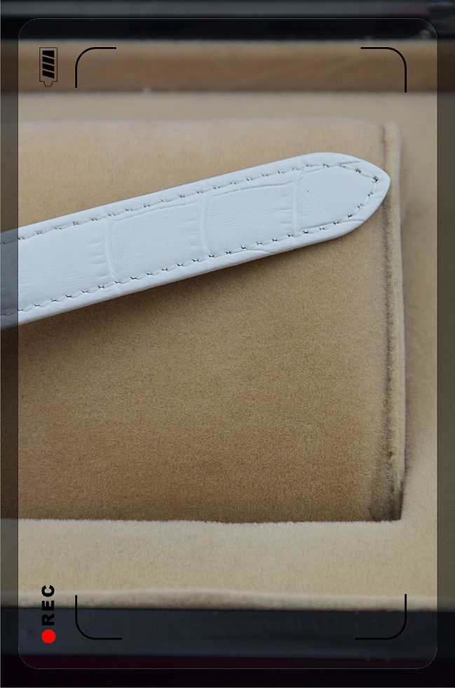 【材質】:高硬度耐磨藍寶石鏡面,全鋼錶殼,銀色錶圈,真皮錶帶,原裝按扣,白色錶盤,藍色錶針,黑色羅馬刻度