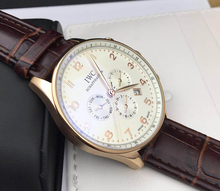 萬國葡萄牙系列六針日曆皮帶男士機械腕錶