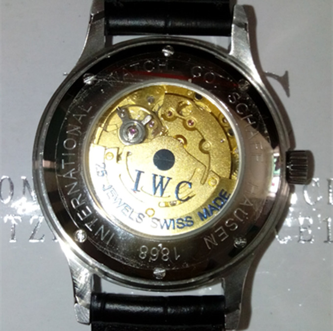 精仿萬國男機械腕錶 單日曆黑盤 瑞士ETA2824黃機芯