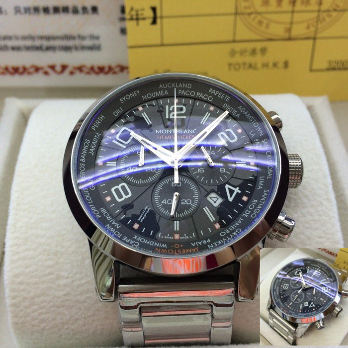 【品牌】:萬寶龍(MONTBLANC)【產地】:瑞士(香港組裝)【款式】:男士手錶【機芯】:瑞士原裝進口石英機芯【錶面】:法國玻璃藍寶石鏡面,永不磨損。莫氏9級藍寶石錶面【材料】:進口瑞士316精鋼錶殼 精鋼錶帶,永不掉色、永不生銹,高精度藍寶石玻璃永不劃損【尺寸】:直徑:43MM,厚度:13MM【標誌】:錶面、錶背、錶扣均有原廠標誌