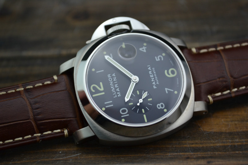 款式:男錶 機芯:自動機械錶芯 錶殼:不銹鋼 尺寸:44mm 厚度:14mm 錶冠:旋入式 錶底:不透底 錶鏡:藍寶石水晶玻璃 錶盤:黑色 錶帶:鱷魚皮 錶帶顏色:深棕色 錶扣:蝴蝶扣 防水:生活防水包裝:精美包裝盒、保修卡等 功能:日期顯示 夜光