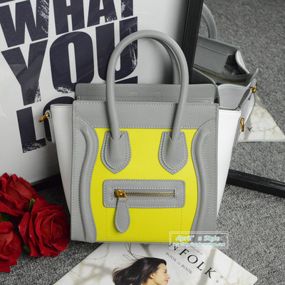 塞琳(席琳)Celine luggage笑臉包2017真皮女包拼色笑臉包撞色囧包手提斜挎牛皮女包【廠家特價清倉 數量有限】 :僅售 300圆人民幣!台币1500!