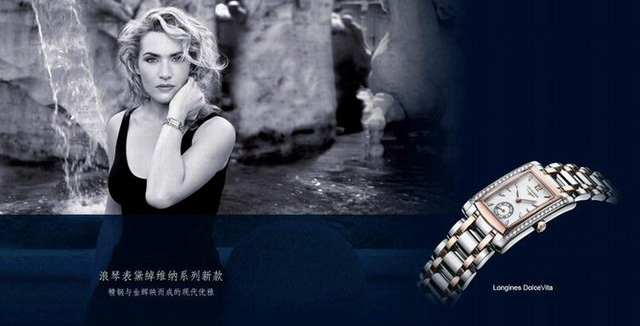 浪琴錶以一場富麗奢華的盛宴委任凱特·溫絲萊特(Kate Winslet)擔任最新的優雅形象大使。日前凱特·溫絲萊特偕同印度女演員艾什瓦爾雅·瑞兒(Aishwarya Rai Bachchan)和亞洲電影明星林志玲一起參與了錶現義大利式甜美生活la Dolce Vita的產品廣告拍攝。