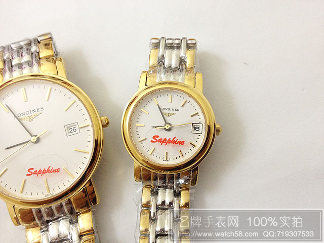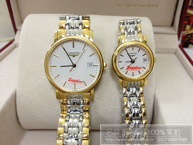 浪琴情侶手錶石英機芯藍寶鏡面漸金錶帶