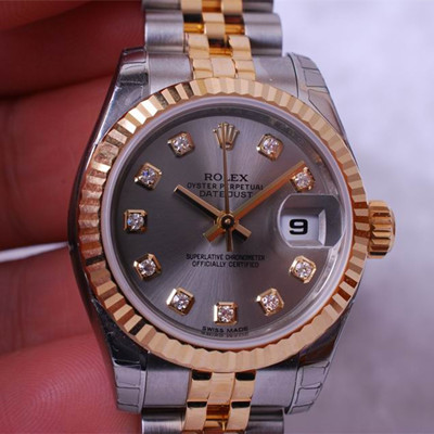 rolex勞力士日誌型18K間金鑲鉆ETA2824機芯 機械女錶179173G灰面