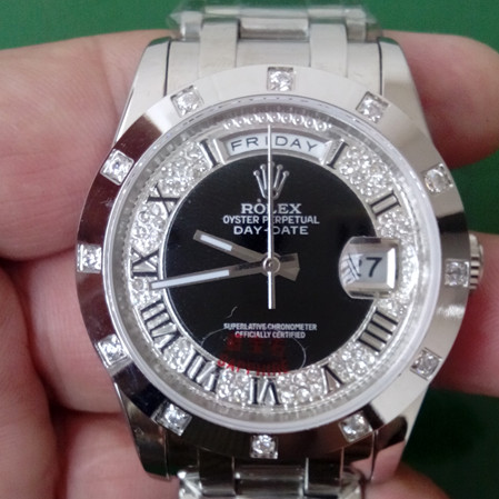 高仿Rolex/勞力士星期日曆型 蠔式恒動鑲鉆男錶 ETA2824雕花機械