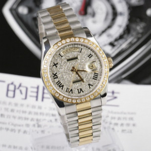 勞力士星期日曆型 瑞士原裝2836機芯 18K金男士手錶 滿晶鉆全自動機械錶