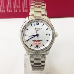 浪琴女士手錶條釘刻度3針日曆藍寶石鏡面-WATCHES1328