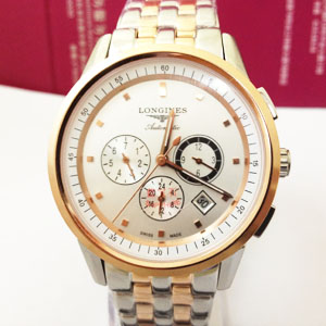 longines-玫瑰金白色面6針背透機械男錶Q9932