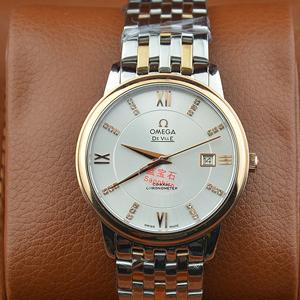 歐米茄超薄款進口日本機芯 金間錶帶 鑲鉆男士機械腕錶
