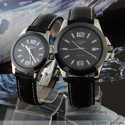 特價Longines浪琴手錶康卡斯皮帶黑陶瓷圈三針3針石英機械情侶對錶Longines017-WATCHES153