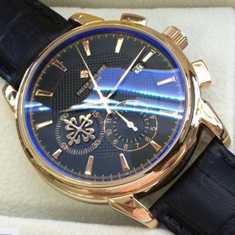 【品牌】:百達翡麗(PATEK PHILIPPE)【產地】:香港組裝【款式】:男士機械手錶【機芯】:原裝進口全自動機械機芯【錶面】:法國玻璃藍寶石鏡面,永不磨損。莫氏9級藍寶石錶面【材料】:進口瑞士玫瑰金錶殼 法國小牛皮錶帶,永不掉色、永不生銹,高精度藍寶石玻璃永不劃損【尺寸】:直徑:43MM,厚度:13MM【標誌】:錶面、錶背、錶扣均有原廠標誌【功能】:30米防水、防震、防磁【附件】:原裝包裝盒、吊牌、保質卡、說明書、香港發票