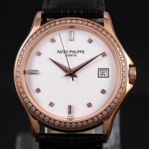 百達翡麗手錶 皮帶 3針日曆 18K玫瑰金 進口雕花機芯