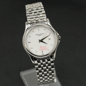 百達翡麗 全精鋼白底簡約商務男士手錶女錶情侶錶 日本進口石英錶