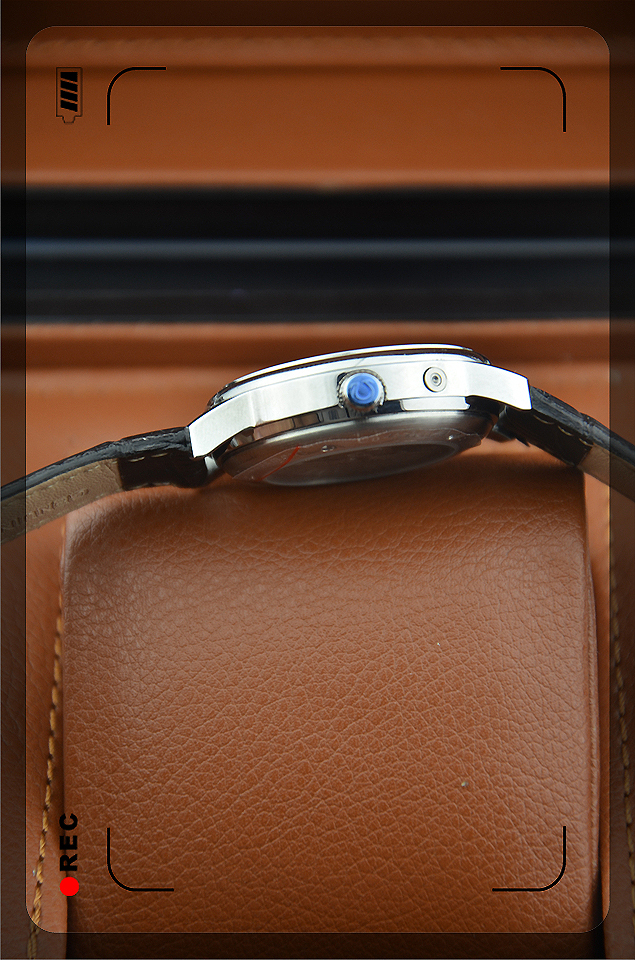 【材質】:高硬度耐磨藍寶石鏡面,全鋼錶殼,真皮錶帶