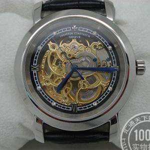 江詩丹頓V.Constantin 機械男錶 精鋼炫金殼鏤空背透3針 背透金機機芯