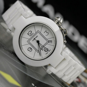 材質:高硬度耐磨藍寶石鏡面,純白陶瓷錶殼錶帶,白色錶盤,四方位數字刻度