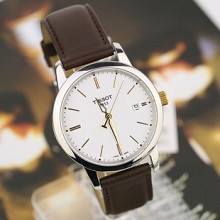 天梭 黃曉明代言三針日曆 石英 男錶T033.410.26.01(棕色帶)-WATCHES2148