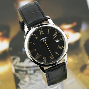 品牌:(tissot) 型號:T033.410.26.05 運作模式:石英(電池壽命38個月) 機芯:瑞士原裝石英機芯 材質:高硬度耐磨藍寶石玻璃鏡面,316L精鋼錶殼,黑色真皮錶帶,針扣 錶盤顏色:黑色 錶盤直徑:38mm 錶盤厚度:7mm 重量:約42g 功能:計時3針,金色羅馬刻度,日歷顯示 防水:生活防水