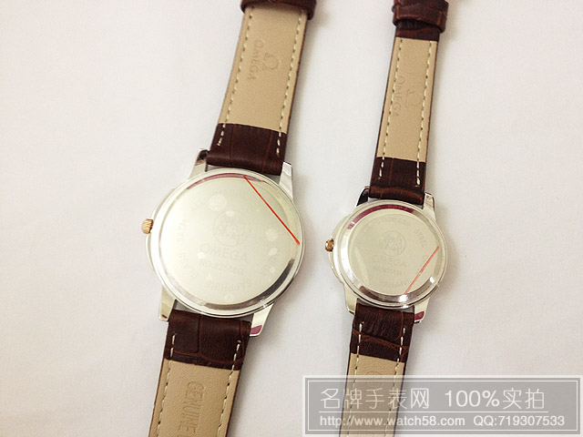 omega歐米茄石英情侶手錶皮帶白麵