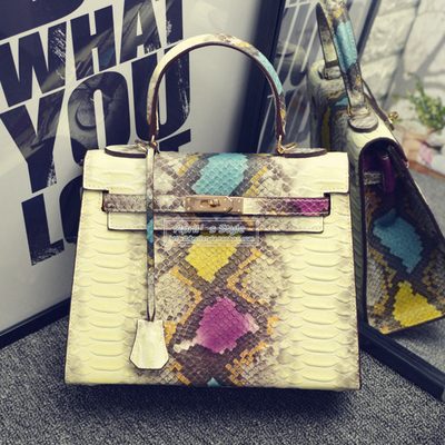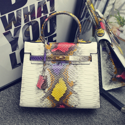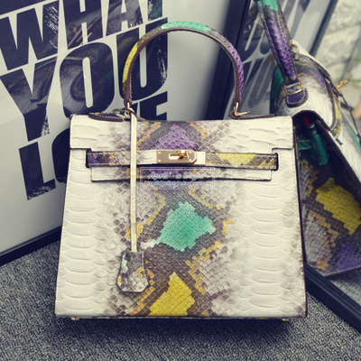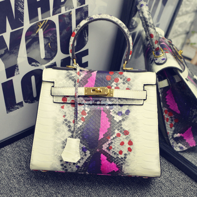 愛馬仕Hermes真皮蟒蛇紋凱莉包拼色女包手提包 新款單肩包百搭【廠家特價清倉 數量有限】 :僅售 300圆人民幣!台币1500!
