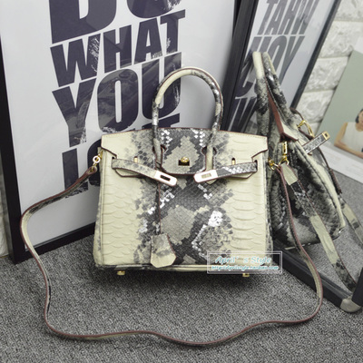 采用今年醉流行的蟒蛇紋搭配經典鉑金包款式!和大工廠合作生產,皮質和花紋是訂做。采用高質量蟒蛇紋二層牛皮,內料是超柔軟超纖材料。配一個拉鏈暗袋,一個手機袋和一個證件袋,以及肩帶(大號無),包飾流蘇,鎖和鑰匙。