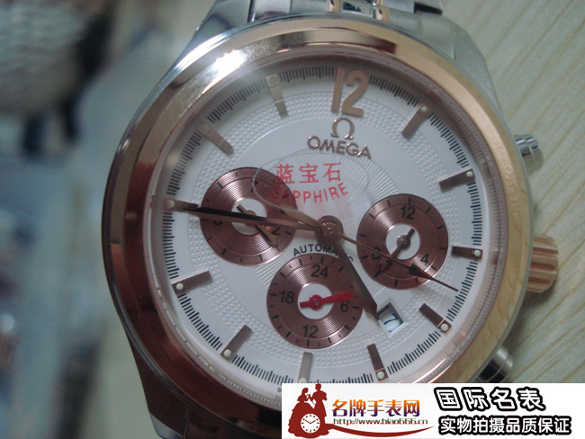 歐米茄玫瑰金6針日曆藍寶石鏡面