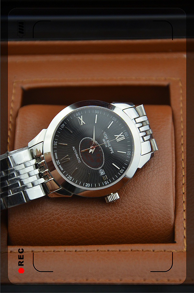 百達翡麗黑色錶盤316精鋼男士機械腕錶PP0172460-WATCHES326