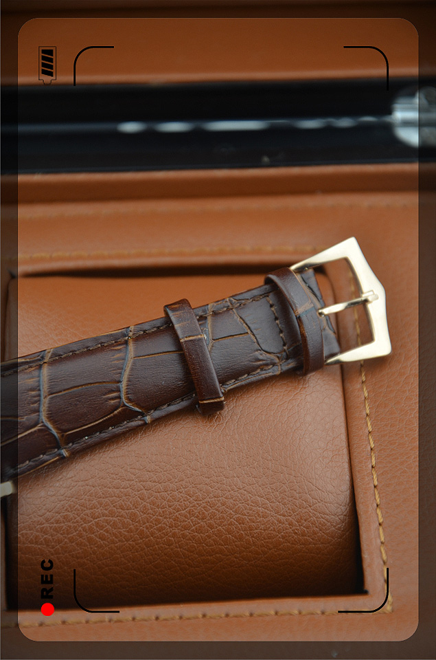 【材質】:高硬度耐磨藍寶石鏡面,全鋼錶殼,真皮錶帶