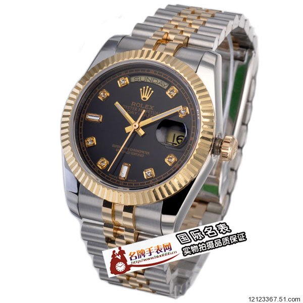 | [錶盤] | 黑色鑲鑽錶盤,雙日曆,夜光 |