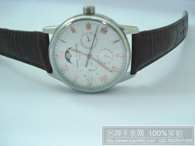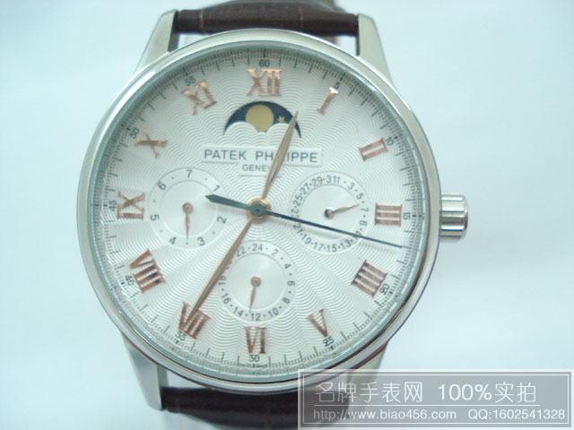百達翡麗羅馬刻度日月星辰6針皮帶男錶