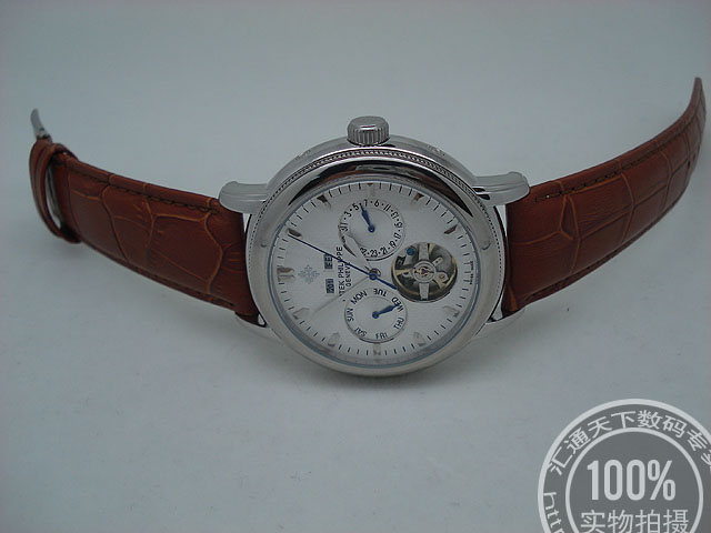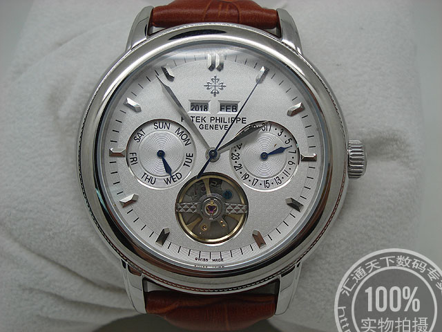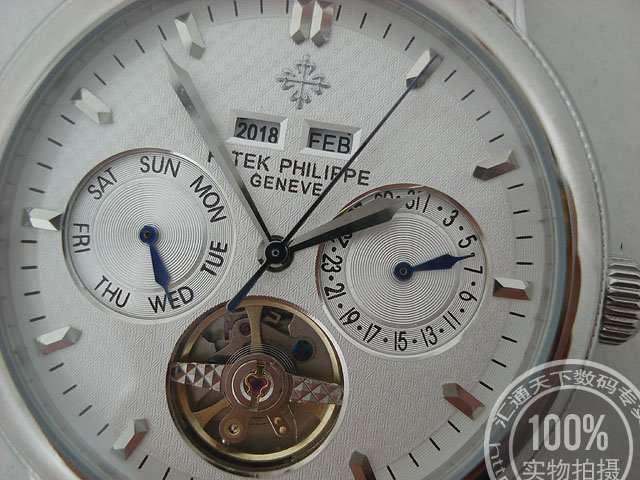 百達翡麗 銀色錶盤條釘刻度背透男錶陀飛輪