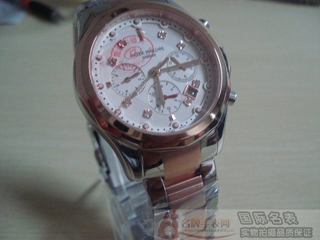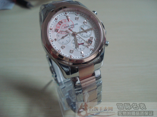 百達翡麗 Patek Philippe 機械男錶 全鋼3眼6針 鑲鑽白色錶盤 玫瑰金
