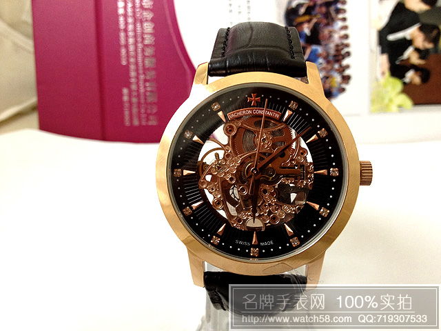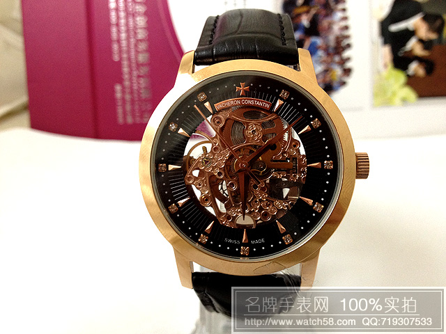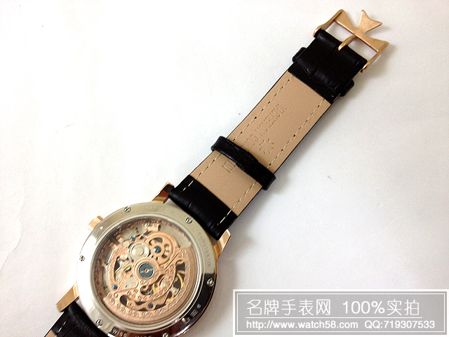 江詩丹頓背透黑色面全自動機械機芯真皮錶帶VC910235