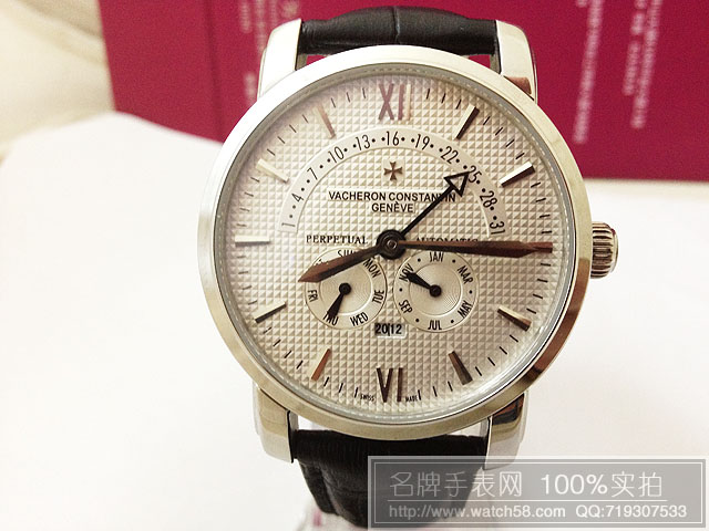江詩丹頓5針星期月份皮帶男士手錶VC382-WATCHES457