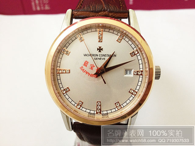 【材料】:18K玫瑰金錶殼,鑽石刻度,義大利小牛皮錶帶,高精度藍寶石玻璃永不劃損