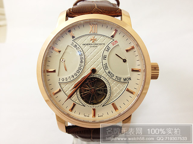 江詩丹頓手錶 傳承系列 機械陀飛輪多功能運動腕錶玫瑰金,大錶盤適合胖人