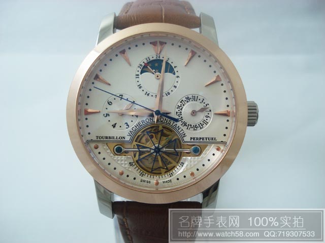 江詩丹頓 陀飛輪男錶 玫瑰金金面皮帶手錶 VC056-WATCHES481