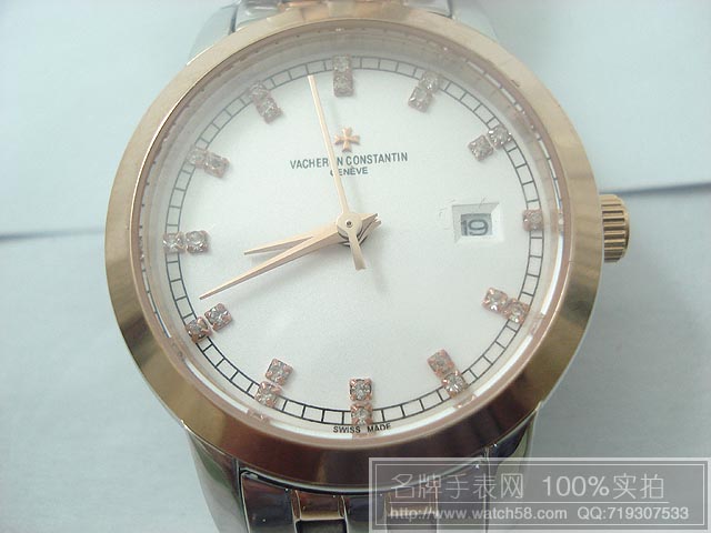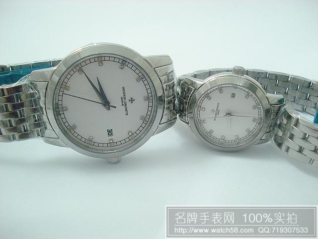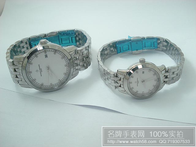 江詩丹頓超薄鋼質3針白底石英情侶錶 VC055-WATCHES482