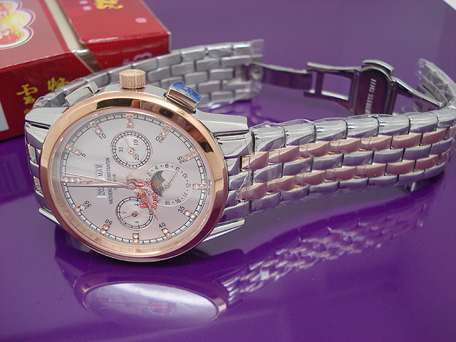 江詩丹頓手錶 男士手錶 男錶 鋼帶月相多功能萬年曆自動機械錶側面