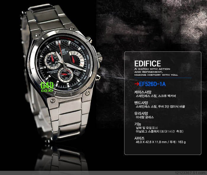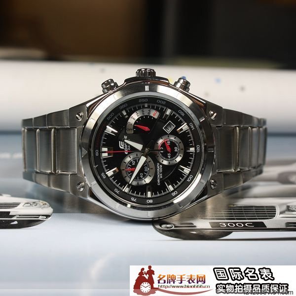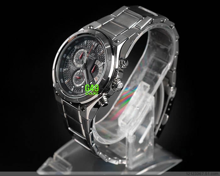 產品簡介:CASIO EDIFICE系列【速度&智慧】的化身-娛樂與專業的結合 三眼計時碼錶賽車錶 多功能指針型手錶 男錶 →本款結合了碼錶指標系列 & 指標系列的特色,堪稱EDIFICE品牌哲學"速度 & 智慧"的化身。擁有會倒退的指標,在星期顯示的部份清晰易讀。面板邊緣有編織紋路設計.